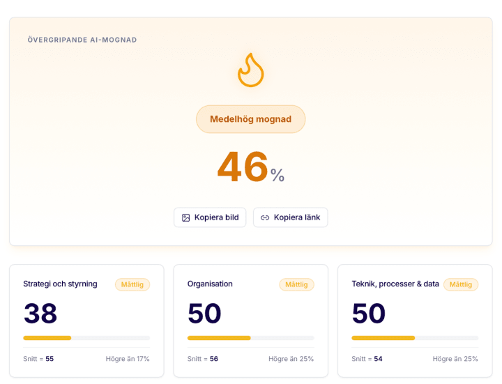 Ta reda på hur väl rustad er organisation är för att använda AI i verksamheten – från strategi till operativ användning.