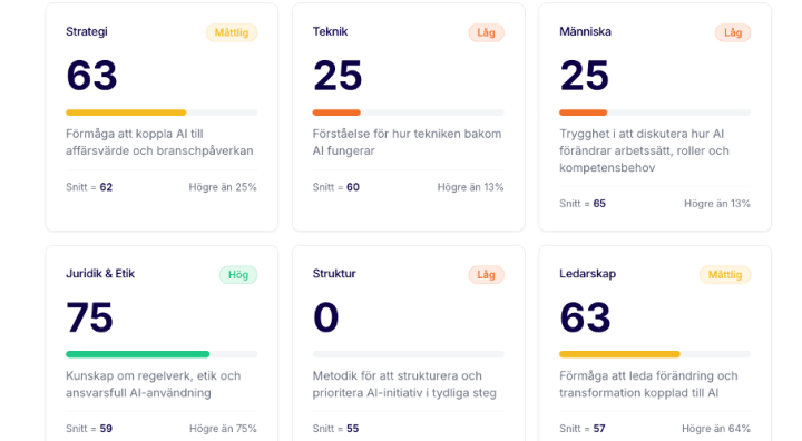 Ta reda på hur redo du är för att leda AI-transformation. Tar 3-4 minuter och du kan jämföra dig med andra som gjort testet.